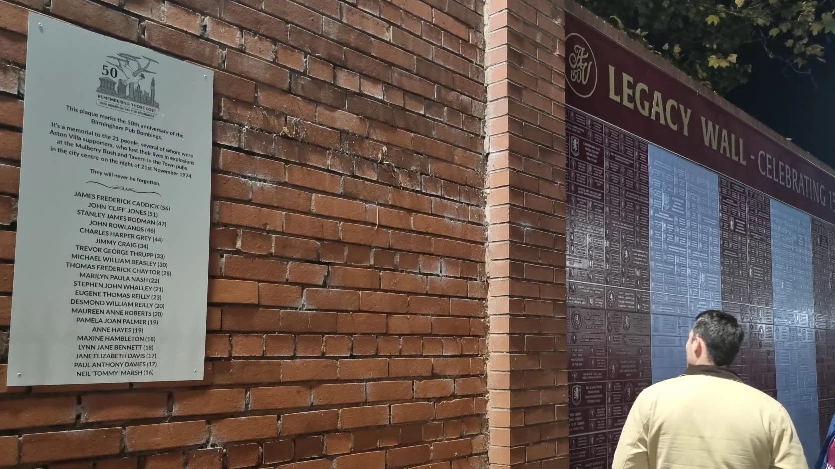 I received these pics the other day from a client late evening. He'd been to Villa Park for a game and a project we worked on together last year had a final piece added which was an installation of a plaque in memory of the 21 people who lost their lives in the Birmingham Pub Bombings in 1974.